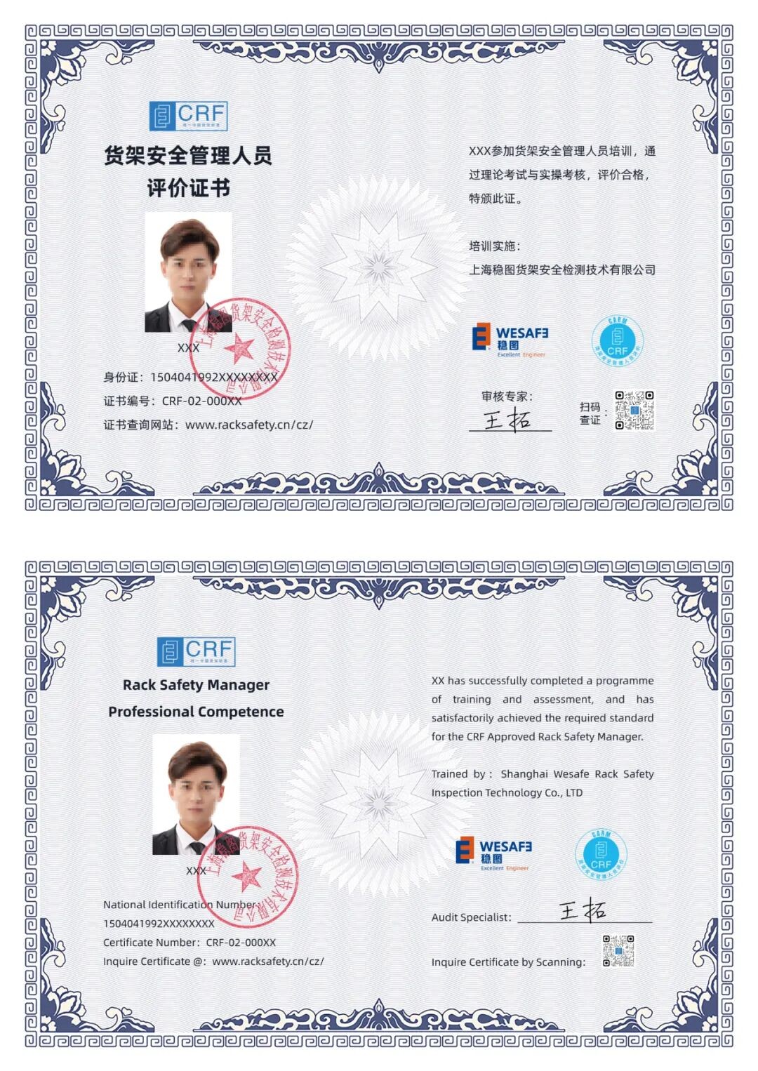 通过考核的学员将获得《货架安全管理人员评价证书》,支持扫码验证,全国通用!